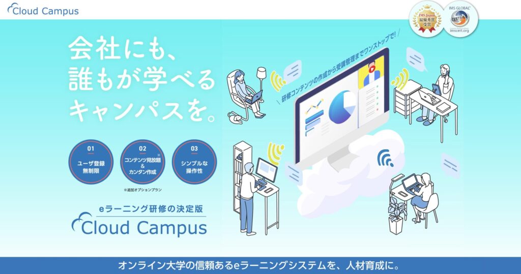 Cloud Campusは、ソフトバンクグループが運営する完全インターネット制大学・サイバー大学で独自開発されたeラーニングプラットフォームです。