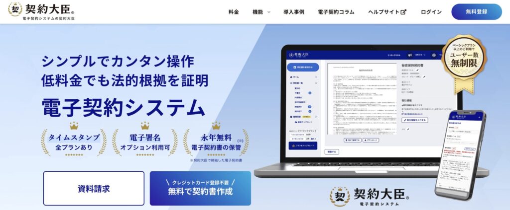 契約大臣は、「使いやすさ」と「圧倒的な低コスト」を両立させた電子契約サービスです。
