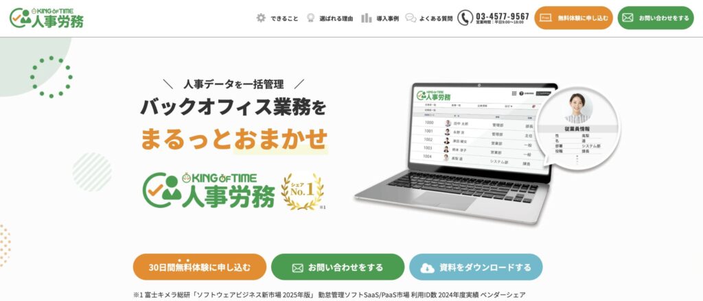 会計ソフトで有名なフリー株式会社が提供する人事労務システムです。