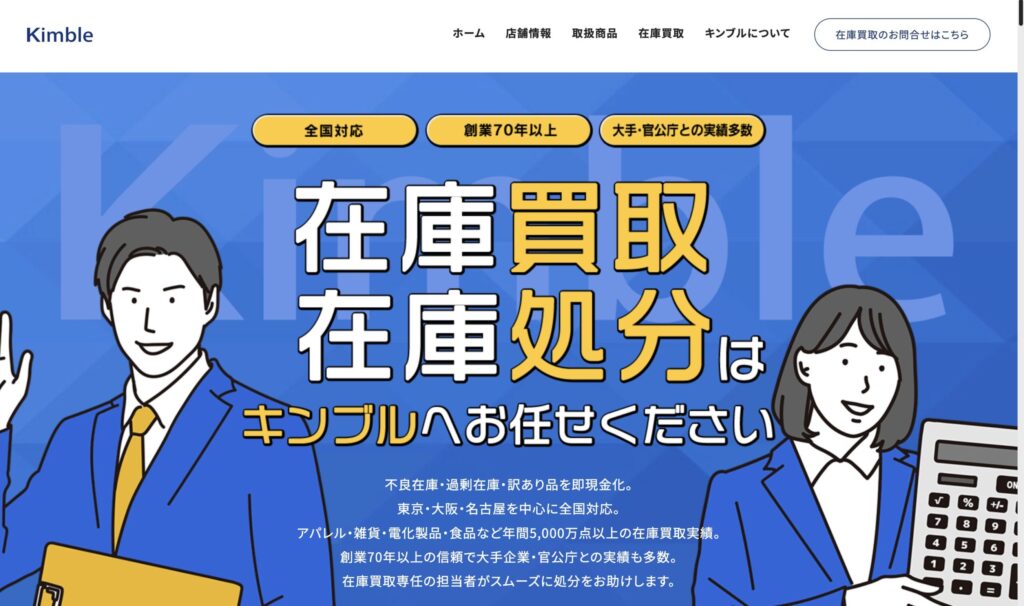 大手企業や官公庁からも選ばれる高い信頼性と、年間5,000万点以上という圧倒的な買取実績を誇るのが「キンブル」です。