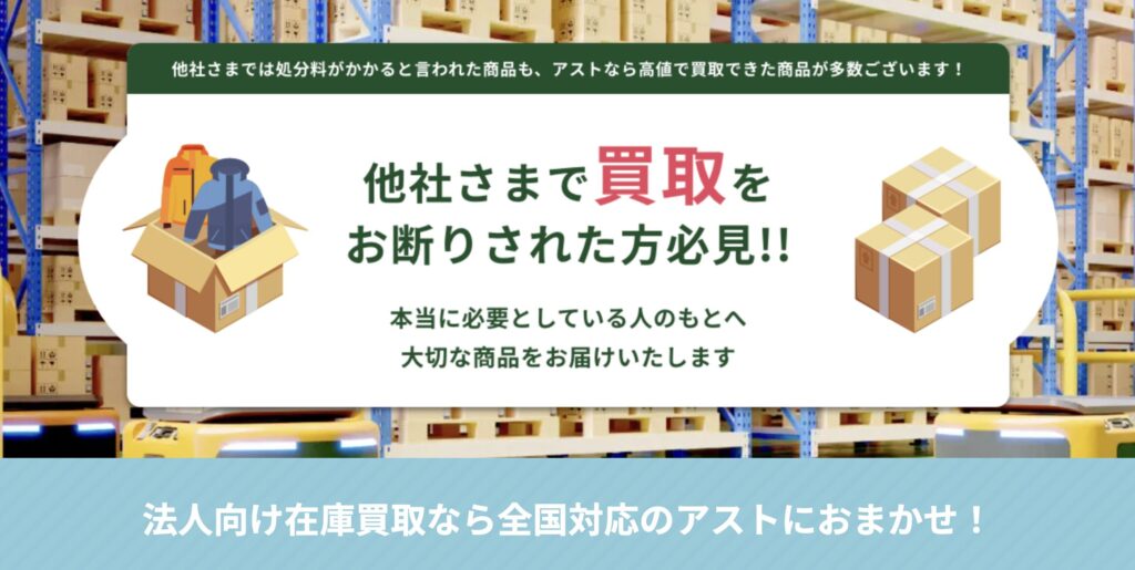 アストは、他社では値段が付かなかった在庫に価値を見出してくれる可能性があります。