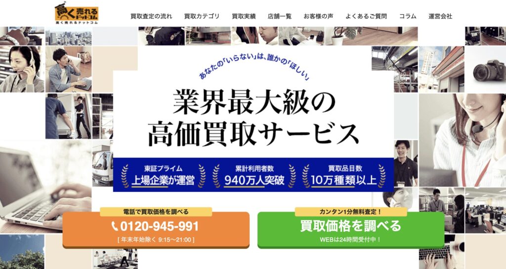 高く売れるドットコムは、10万種類以上のアイテムを扱う総合買取サービスです。