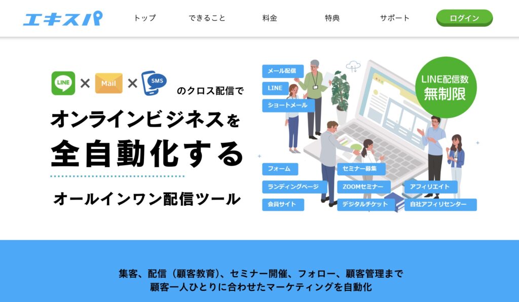 「エキスパ」は、単なるメール配信に留まらない、統合的なメッセージングプラットフォームとしての側面を持つサービスです。