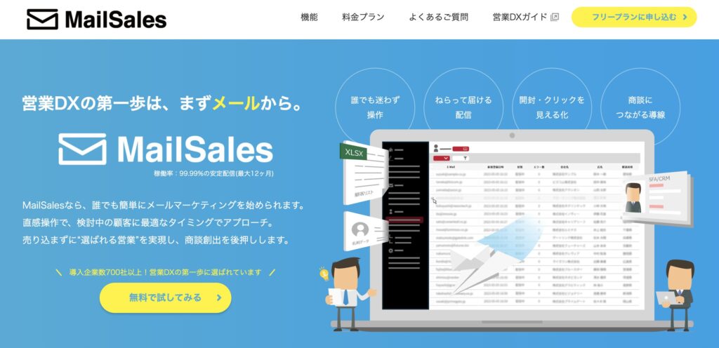 「Mailsales」は、導入企業数700社以上を誇る、営業DXの第一歩として選ばれているサービスです。