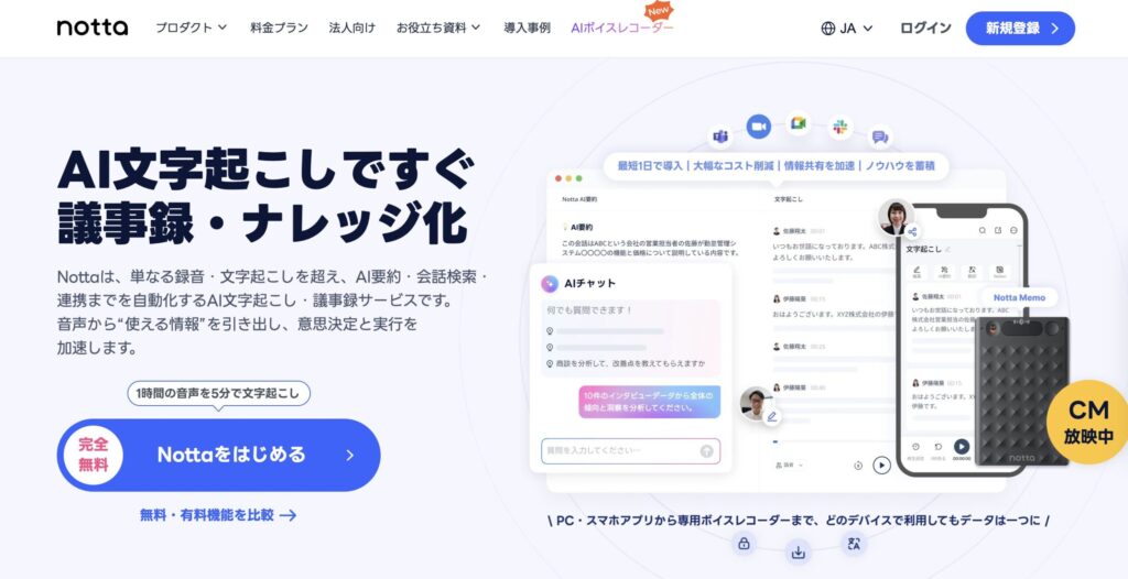 Nottaは、業界トップクラスの音声認識精度を誇るAI議事録ツールです。