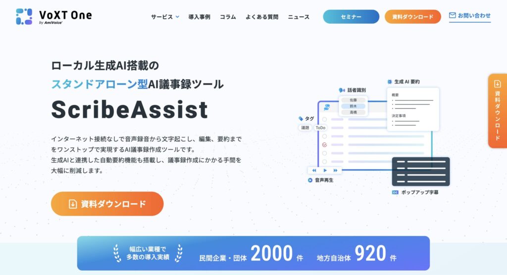 ScribeAssistは、セキュリティを最重要視する組織向けの議事録作成支援ツールです。
