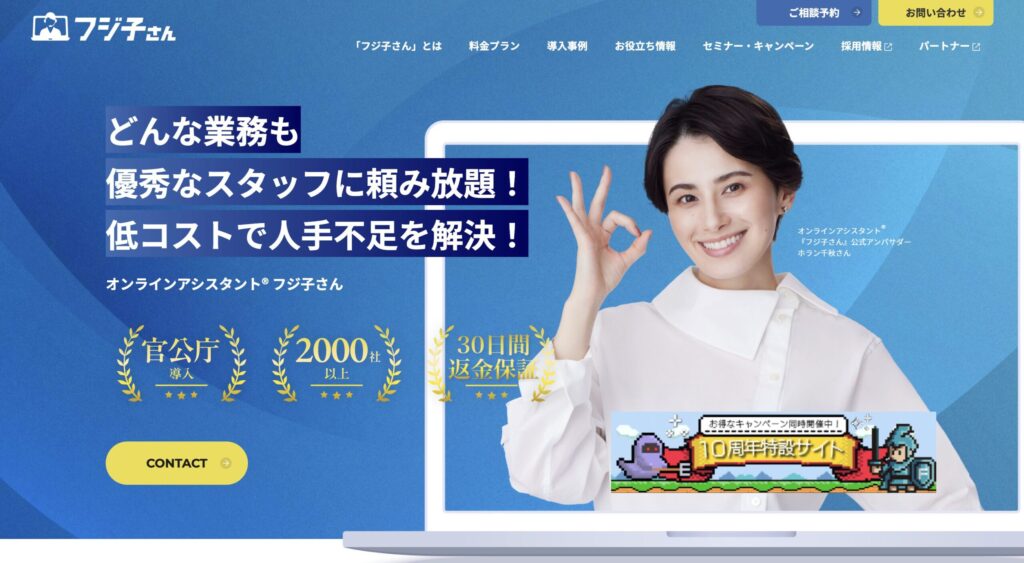 圧倒的な低コストでありながら、秘書、人事、経理といったバックオフィス業務から、Webサイト制作、SNS運用代行まで、幅広い業務に対応しています。