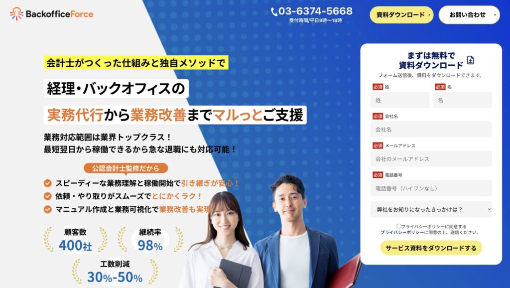 BackofficeForceは、その名の通りバックオフィス業務、中でも経理・財務領域に特化した専門性の高いオンラインアシスタントサービスです。