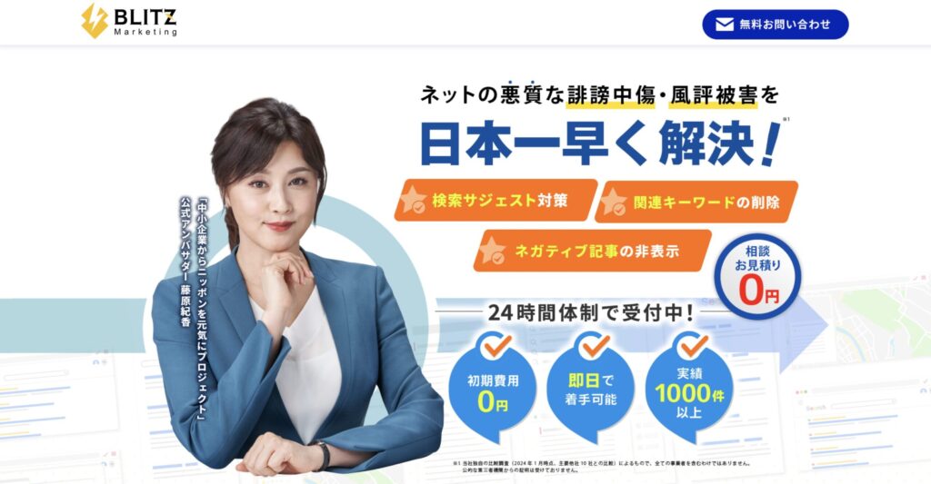 BLITZ Marketingは、Webマーケティング事業で培った高度なSEOの知見を活かし、逆SEO対策やサジェスト対策に特化したサービスを展開しています。