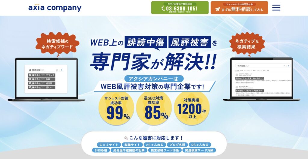アクシアカンパニーは、逆SEO対策で85%という高い成功率を誇る実力派企業です。