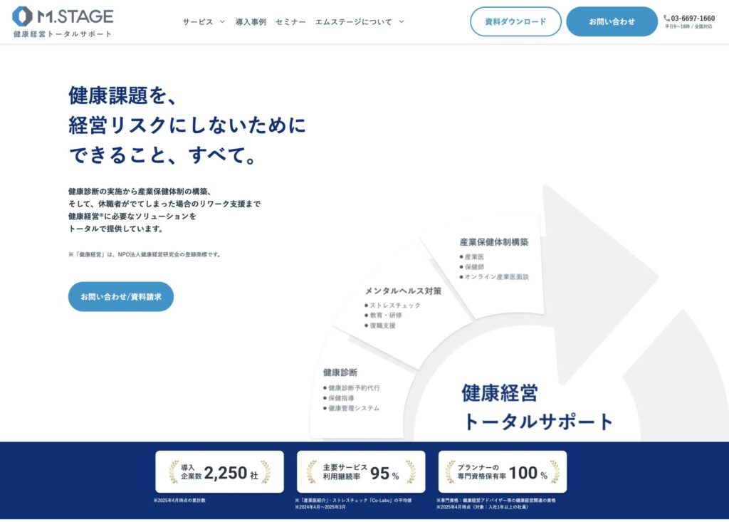 また、契約企業には産業保健師による無料サポートが付帯しており、健康診断結果の集計や分析方法など、実務的なアドバイスを受けることが可能です。