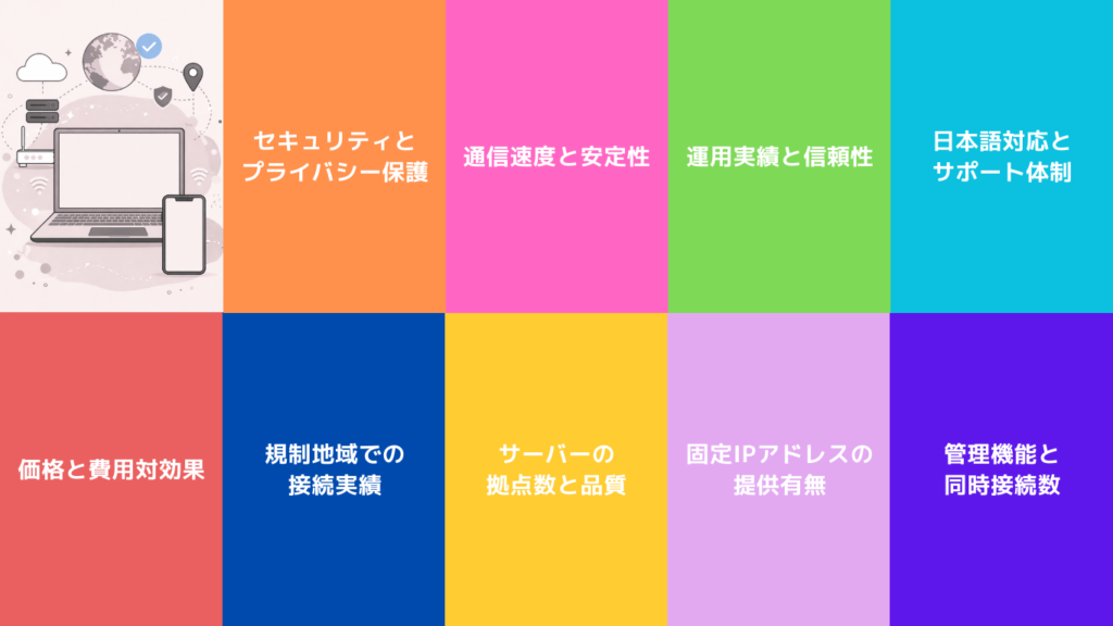 各サービスの特徴を理解し、最適なVPNを見つけましょう。