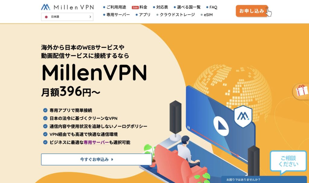 MillenVPNは、日本の企業が運営する国産VPNサービスです。